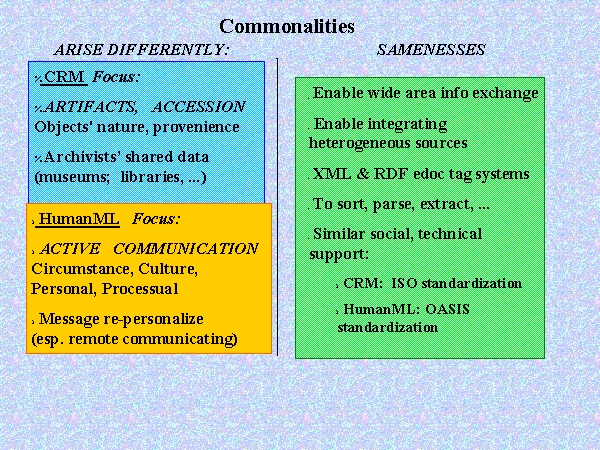 The Conceptual Resources Model of CIDOC and HumanML initiatives have some things, important things in common, especially in their approach. Yet their bases contrast.