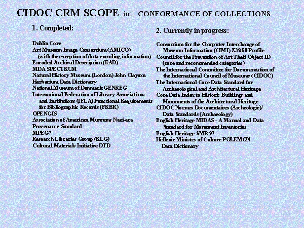 What is CRM used for? Ascertaining the CONFORMANCE of vocabularies used to describe artifact collections of many types.